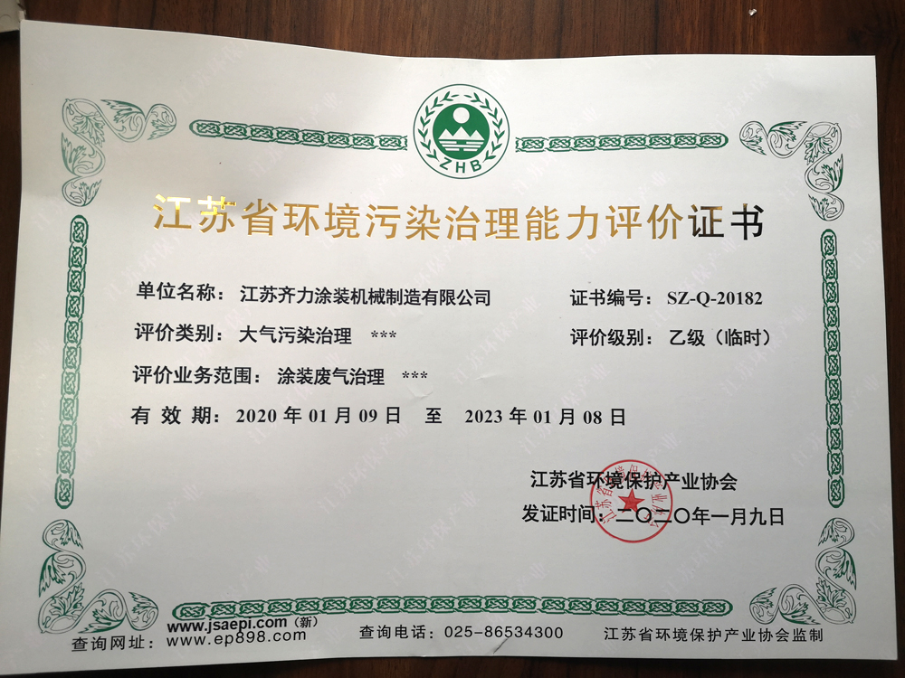 江蘇省環(huán)境污染治理能力評(píng)價(jià)證書正本